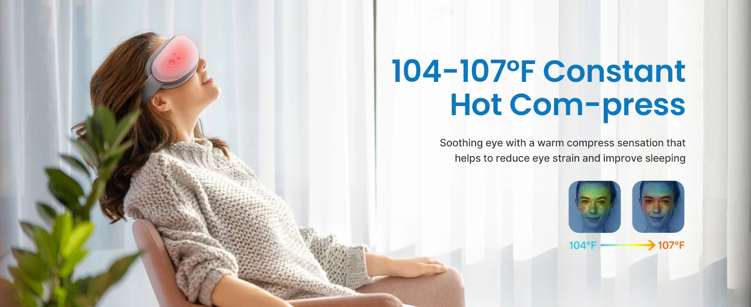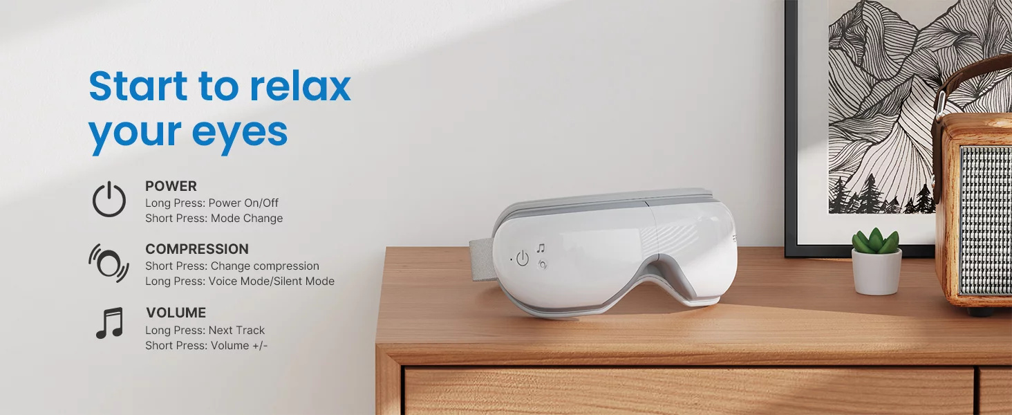🔹 💆 ماساژ چندگانه: ترکیبی از فشرده‌سازی ملایم هوا، گرما، و لرزش برای کاهش خستگی، کاهش پف چشم و بهبود خواب.