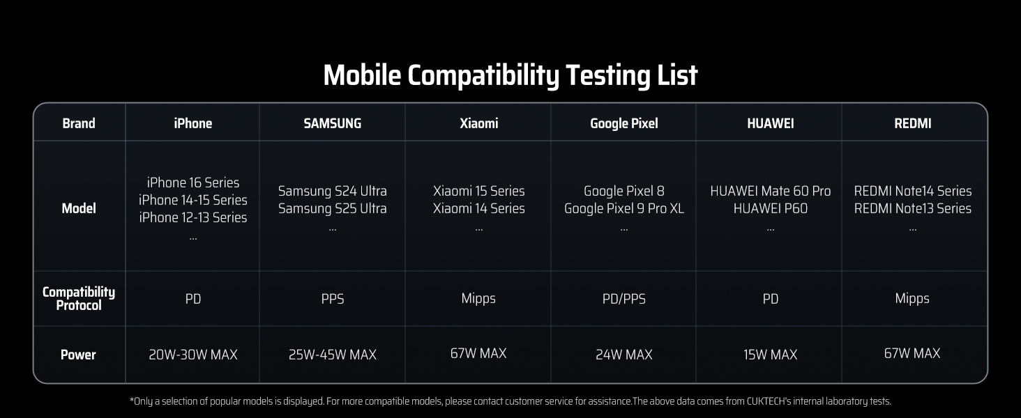 - شارژ سریع 85 واتی: شارژ هوشمندتر و سریعتر - مکبوک ایر را در 30 دقیقه تا 55٪، سامسونگ S25 اولترا را تا 68٪، آنر 200 را تا 70٪، آیفون 17 پرو مکس را تا 68٪ و ویوو X200 را تا 52٪ شارژ میکند. تاخیرهای شارژ آهسته را از بین ببرید و در هر زمان و هر مکان، بهرهوری خود را حفظ کنید.